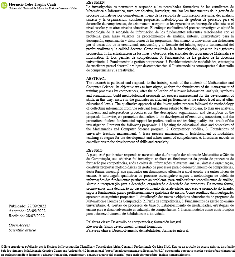Gestión de procesos de formación integral por competencias de los estudiantes de Matemática e Informática