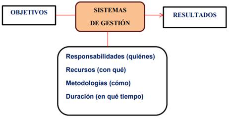 “Un sistema de Gestión ayuda a una organización a establecer las metodologías, las responsabilidades de sus miembros, los recursos, las actividades que les permite la obtención de buenos resultados deseados, es decir, la obtención de los objetivos establecidos” (Beltrán et al.,2002, p.9)