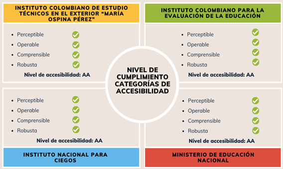 La accesibilidad en las páginas institucionales en Colombia cuenta con una brecha que se ha logrado reducir mediante las constantes capacitaciones brindadas por diversos organismos, permitiendo que en la actualidad la mayoría de entidades cuenten con varios indicadores en nivel A.