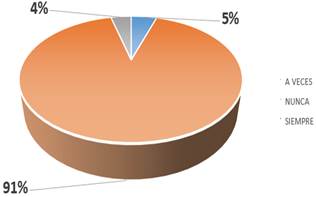 • El 4% de los docentes de la UNE en tiempos de confinamiento, referencian que siempre la institución les otorga los equipos y mobiliarios necesarios para realizar el trabajo remoto.