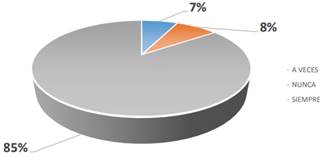 • El 85% de los docentes de la UNE en tiempos de confinamiento, referencian que siempre su comportamiento ha cambiado debido al trabajo remoto y las actividades virtuales.