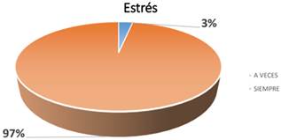 • El 3% de los docentes de la UNE en tiempos de confinamiento, referencian que a veces sienten estrés por problemas laborales, sociales y sobrecarga laboral.