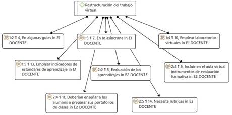 Red hermenéutica con respecto a la subcategoría restructuración del trabajo virtual