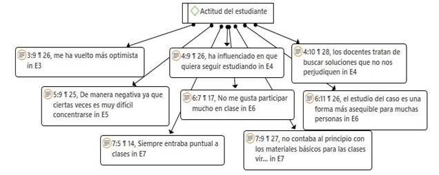 Red hermenéutica con respecto a la subcategoría actitud del estudiante