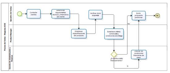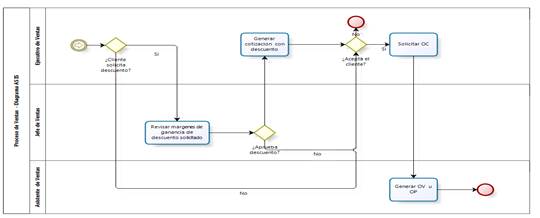 Ahora bien, para el análisis de las siguientes etapas del DMAIC fue necesario entender el proceso de ventas en la empresa, por lo que se realizó un análisis de proceso de ventas con el diagrama AS IS cuyo resultado se puede ver en la figura 2.