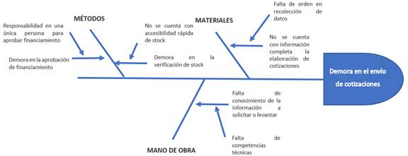 Diagrama de Ishikawa para el análisis de la demora en el envío de cotizaciones