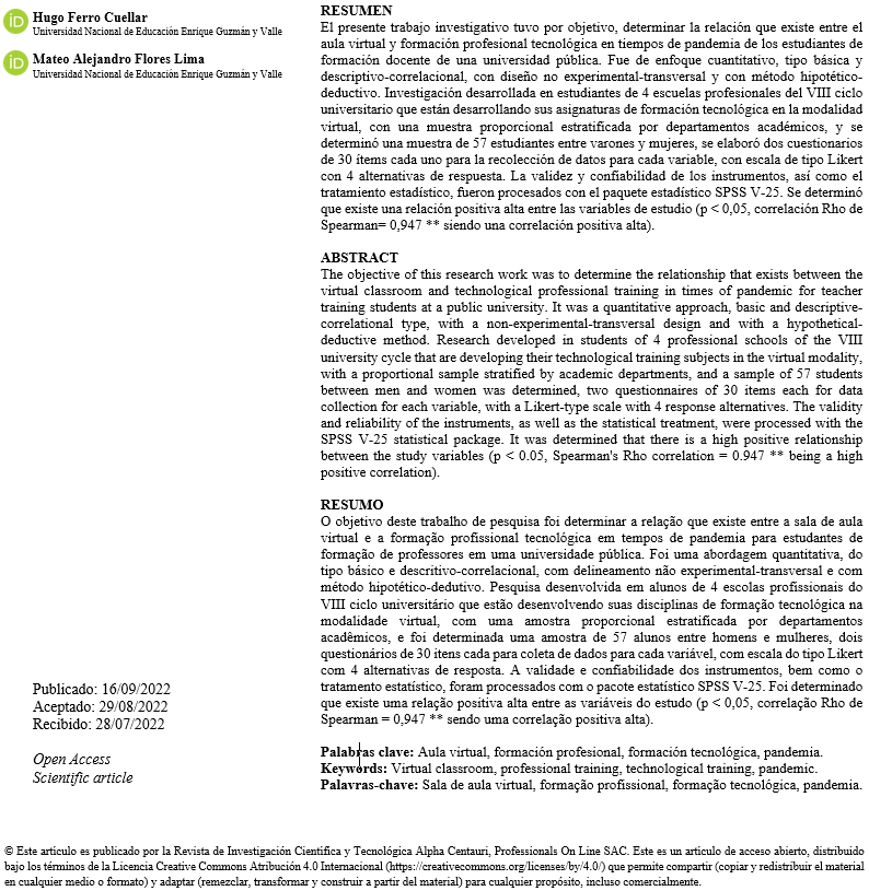 En ese sentido, el presente trabajo tiene como objetivo, determinar si las aulas virtuales inciden en la formación profesional tecnológica en tiempos de pandemia en los estudiantes de una Universidad.
