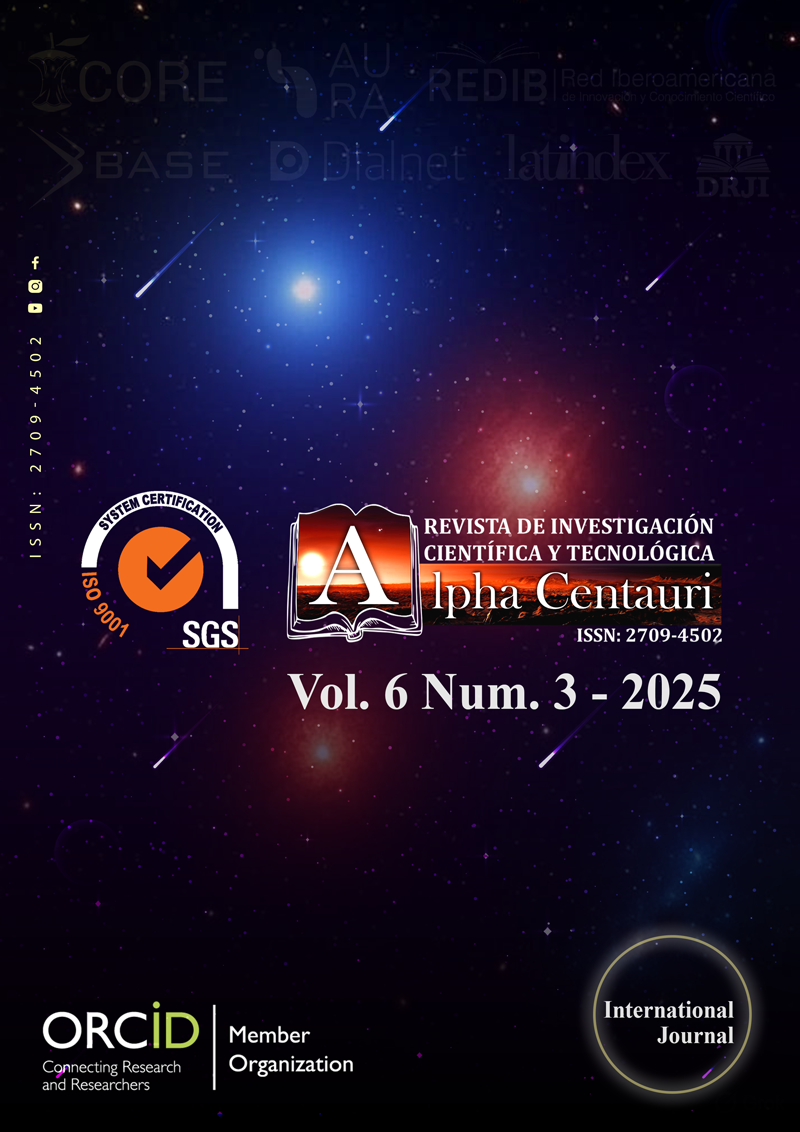La Revista de Investigación Científica y Tecnológica Alpha Centauri es una revista arbitrada y producida a nivel Internacional, es publicada TRIMESTRALMENTE en versión en linea ISSN: 2709-4502.